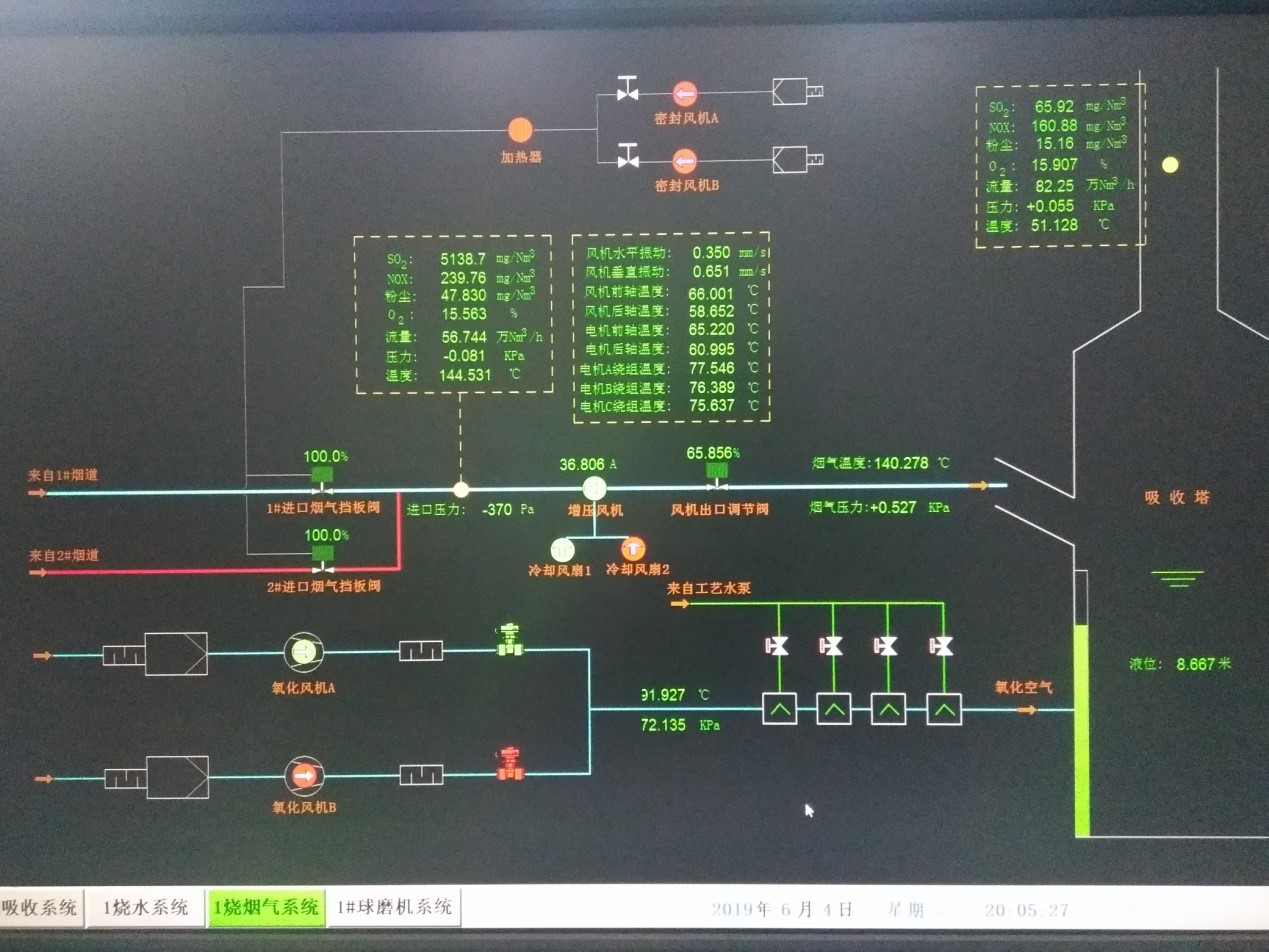 攀藍鼎一號燒結脫硫業(yè)主為攀枝花鋼鐵集團,其采用BOO模式,攀鋼集團燒結面積為360m2,煙氣量1000000Nm3/h,入口SO2濃度6000mg/Nm3,顆粒物濃度60-80mg/Nm3左右,NOX濃度300mg/Nm3左右。經一號燒結脫硫系統(tǒng)脫硫后出口SO2濃度在100mg/Nm3以下,顆粒物濃度在50mg/Nm3以下,NOX濃度在300mg/Nm3左右,其脫硫效率達到98%以上,脫硫煙氣含量等各項指標均達到了國家標準排放要求,并穩(wěn)定運行。同時藍鼎環(huán)保還在繼續(xù)深入研究使脫硫煙氣含量降低的技術。