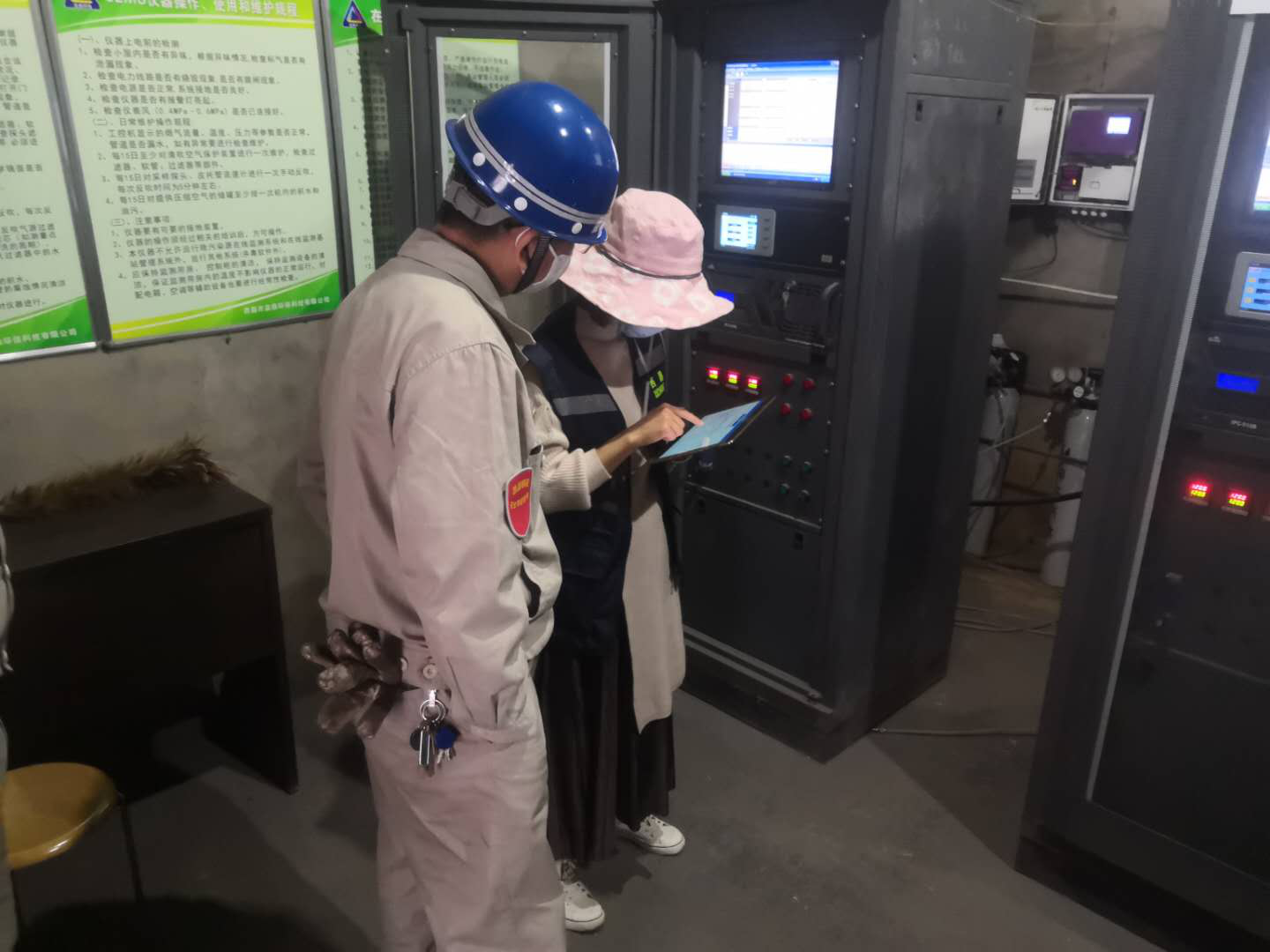 9:40環(huán)保局領(lǐng)導(dǎo)帶領(lǐng)相關(guān)人員在西昌鋼釩領(lǐng)導(dǎo)和西藍(lán)鼎生產(chǎn)部孫部長(zhǎng)陪同下對(duì)在線設(shè)備運(yùn)行及維護(hù)情況進(jìn)行檢查。本次專業(yè)、系統(tǒng)、全面檢查了以下方面:1、現(xiàn)場(chǎng)衛(wèi)生、定置管理及硬性安裝的相關(guān)輔助設(shè)備(消防、制冷);2、運(yùn)維、巡檢、校準(zhǔn)、檢定確認(rèn)、比對(duì)等方面是否落實(shí)及書(shū)面記錄。3、顆粒物監(jiān)測(cè)單元、煙氣參數(shù)檢測(cè)單元、氣態(tài)污染物監(jiān)測(cè)單元、數(shù)據(jù)采集與處理單元數(shù)據(jù)真實(shí)性,在線設(shè)備運(yùn)行參數(shù)與備案參數(shù)是否一致及設(shè)備安裝管路規(guī)范性等檢查。