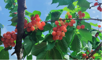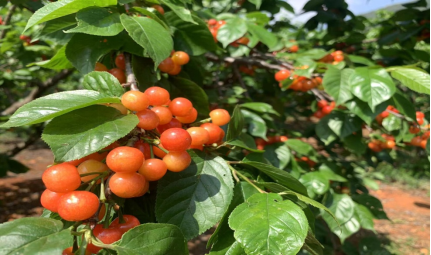 上午十一點(diǎn)班組全員抵達(dá)德昌角半溝。德昌角半溝是涼山每年春夏季的“櫻桃首選采摘?jiǎng)俚?rdquo;。角半溝號(hào)稱德昌“櫻桃谷”,擁有3000畝櫻桃林,環(huán)境優(yōu)美,視野開(kāi)闊。采摘園內(nèi)一片生機(jī)勃勃,翠綠的葉子、鮮紅欲滴的果實(shí)、芬芳的果香都讓人感到夏天到來(lái)的腳步?吹侥且黄t紅的櫻桃,大家紛紛露出喜悅的笑容。
