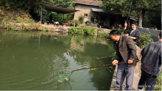 上午8時,大家按約定前往新莊高速路口附近的魚塘釣魚,在路途中大家紛紛自詡為釣魚能手,大有“不服就干”的架勢,路途中大家一片歡聲笑語。到達(dá)目的地拿了魚料后大家都靜下心來釣魚,互相比較誰先上魚、誰上的魚大。