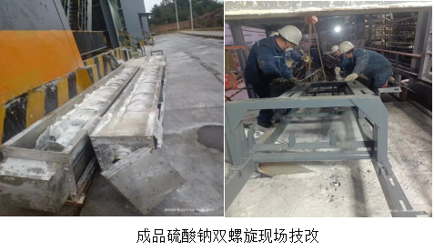 為提升硫酸鈉的品質(zhì),減少系統(tǒng)非計劃停機等風(fēng)險,威遠(yuǎn)藍(lán)鼎生產(chǎn)部在運維部、供應(yīng)部大力支持下決定將兩條螺旋技改成輸送皮帶,2023年1月14日,蒸發(fā)濃縮停機檢修,生產(chǎn)部長黃安軍、楊平、宋雨鵬協(xié)同檢修班長和生產(chǎn)技術(shù)員張衛(wèi)健,集中威遠(yuǎn)藍(lán)鼎檢修骨干對硫酸鈉兩條螺旋開始技改工作,18:30硝螺旋改輸送皮帶技改完成進(jìn)行試車,1月15日凌晨3:00帶料試車正常,經(jīng)過1個月使用觀察,本次技改較螺旋故障率更低,物料輸送更松散、均勻,也大大改善了干燥后硫酸鈉積塊等問題,同時也得到了川威集團(tuán)銷售的認(rèn)可,體現(xiàn)了公司敢于創(chuàng)新的精神。